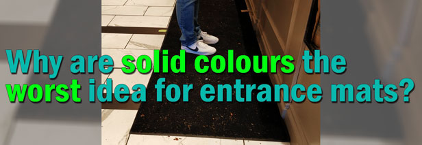The most common difficulty between function and form we see involves mats made from completely solid, monotone colours. Solid black, solid grey, even solid white(!) – clients (and sometimes even interior designers) will request a completely solid-coloured mat for their entrances. And while a solid colour for a mat can lend an air of polished sophistication, it only lasts as long as it takes for one person to take that first step across it.